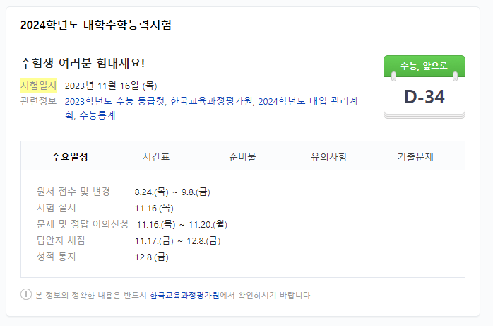 2024 수능 날짜 디데이